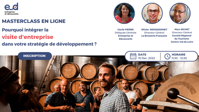 1- le 15 décembre prochain, à 11.30 h, une Masterclass en ligne sur le thème « Pourquoi intégrer la visite d’entreprise dans votre stratégie de développement ? Et vous pouvez vous inscrire sur les réseaux sociaux ou sur leur site, ICI !